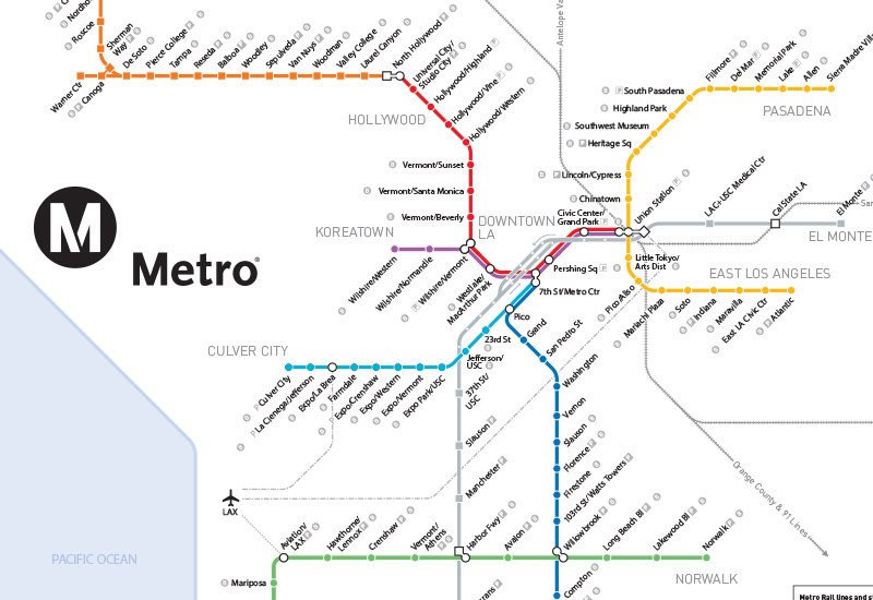 When the Blue Line opened in 1990, Metro Rail’s system consisted of one line, spanning 22 miles and 22 stations. Now, 25 years later, Metro’s six different rail lines with 86 stations, 100 miles of rail and 169 bus routes accommodate 1.3 million people every day, moves 450 million riders per year and supports 88 unique local communities.