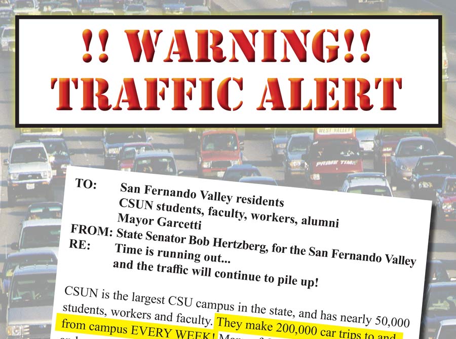 Two transportation summits held by Hertzberg brought attention to CSUN’s transportation woes, with students telling stories about spending hours on multiple bus lines just to get to campus and having to make separate arrangements to get home because bus service often stops before evening classes finish. Furthermore, surface streets are clogged, with 200,000 single-occupancy car trips made to campus each week, and parking around campus is almost impossible to find.