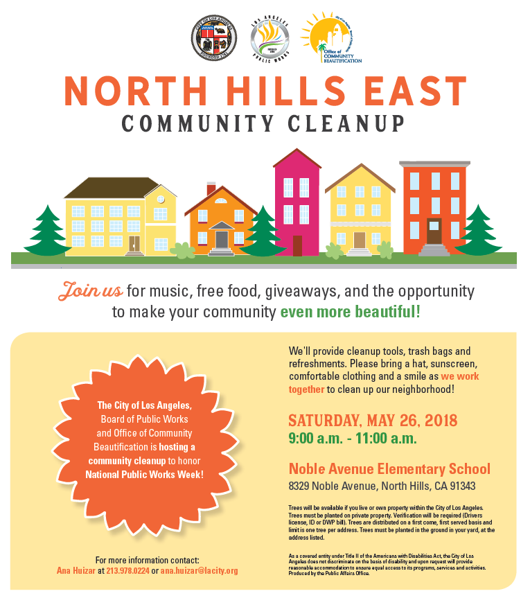 Join different City of Los Angeles agencies for a community clean up in the North Hill East area!